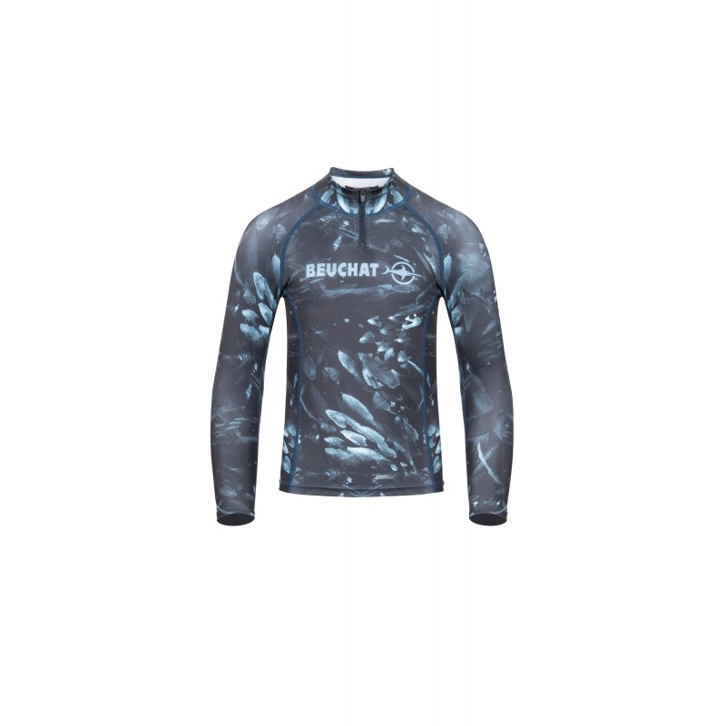 The Atoll Seaweed Rashguard with long sleeves is designed with an exclusive Beuchat pattern.