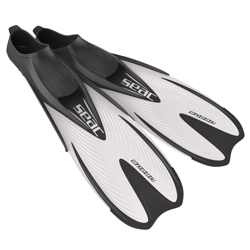 The Seac Speed snorkel fins feature a closed foot pocket made of soft thermoplastic rubber that comfortably wraps around the foot.