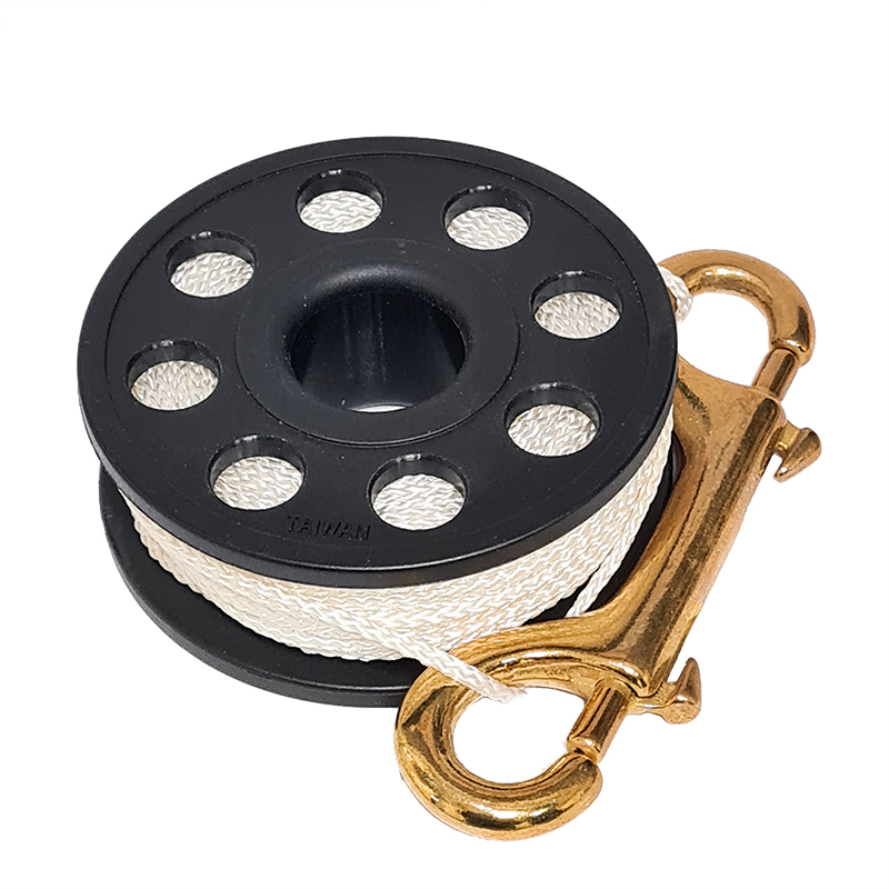 15-meter line wheels with brass carbine. MINIREEL is ideal as the setup line for your deco buoy. The buoy in the image is a purchase product.